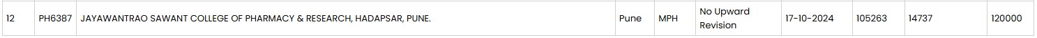 JSPM's Jayawantrao Sawant College of Pharmacy Pune M.Pharm Pharmaceutics fees in first year is ₹ 1.2 Lakhs. The detailed fees is mentioned below.JSPM's Jayawantrao Sawant College of Pharmacy Pune offers a total of 15 seats for M.Pharm Pharmaceutics.