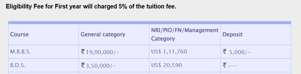 - Candidates need to pay ₹ 3.73 Lakhs in the first year.