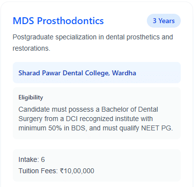 Sharad Pawar Dental College and Hospital Wardha MDS Prosthodontics: Fees 2025, Course Duration, Dates, Eligibility