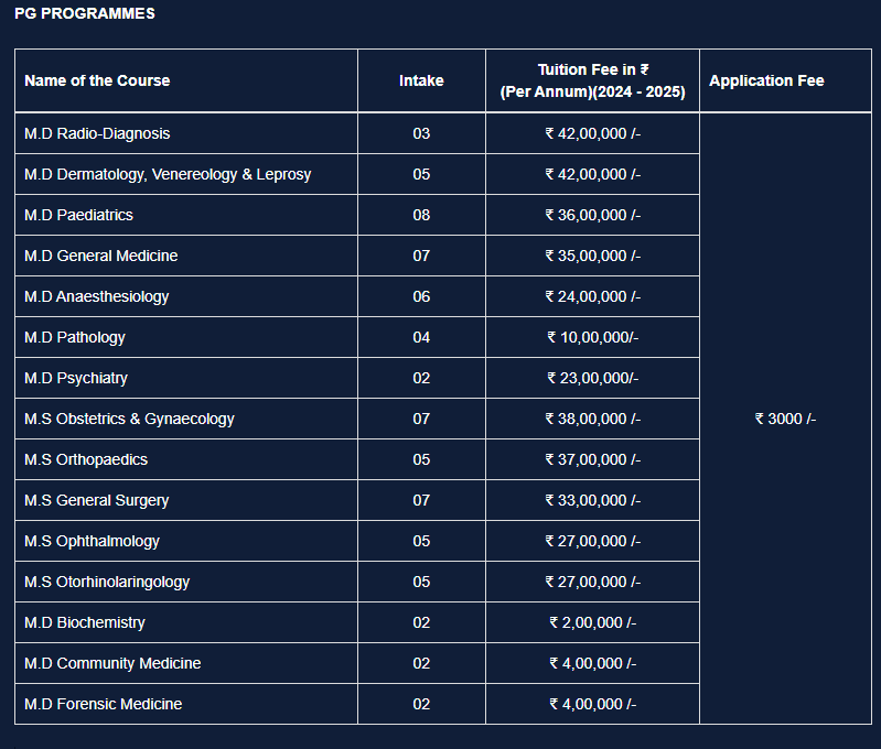 - This includes a total tuition fee of ₹ 99 Lakhs.