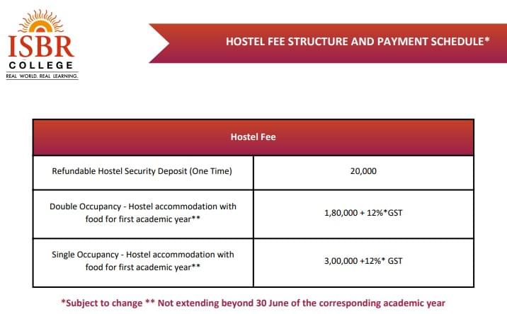 Earlier, M.Com fees at ISBR College Bangalore was ₹ 1.22 Lakhs (in 2024) for the entire course duration. This shows a fee increase of ₹ 3.8 Lakhs over the year.