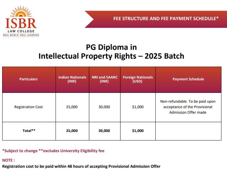 ISBR Law College Bangalore PG Diploma Intellectual Property Rights Fees