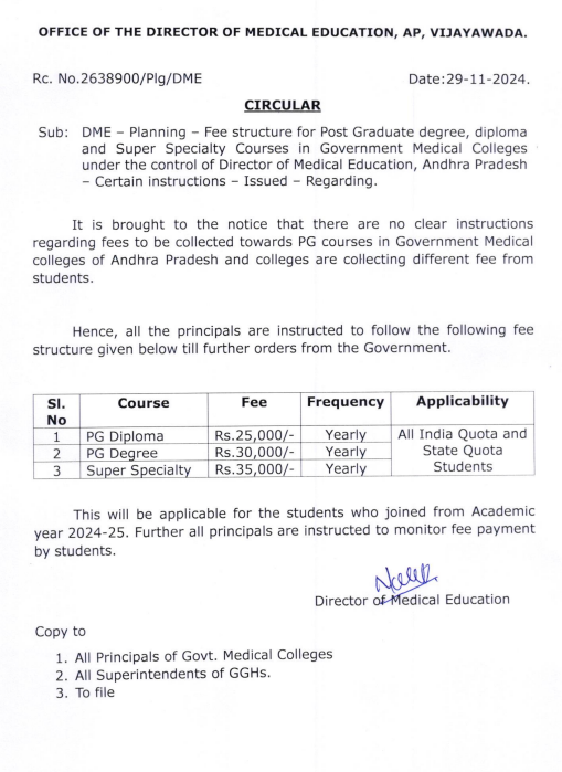 | Fees | Year 1 (in INR) | Year 2 (in INR) | Year 3 (in INR) |