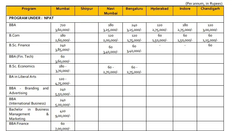 | Fees | Year 1 (in INR) | Year 2 (in INR) | Year 3 (in INR) | Year 4 (in INR) |