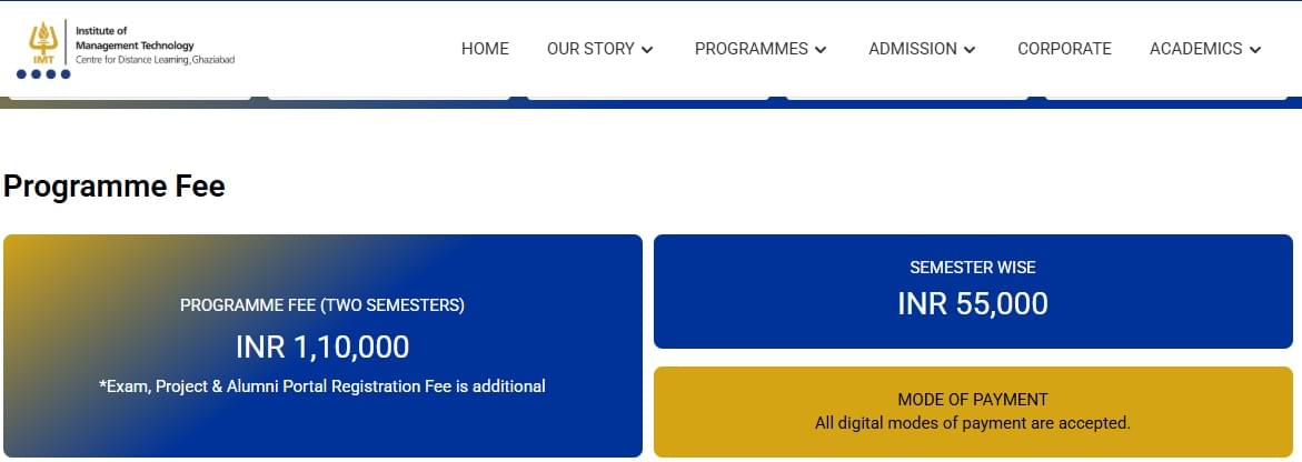 Earlier, Ex-PGDM Strategic Marketing fees at IMT Ghaziabad CDL was ₹ 1.1 Lakhs (in 2024) for the entire course duration. This shows that the fee has remained unchanged since 2024.
