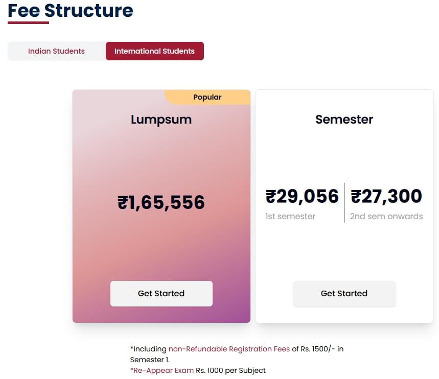 | Registration Fees | ₹1000 | - | - | - | - | - |