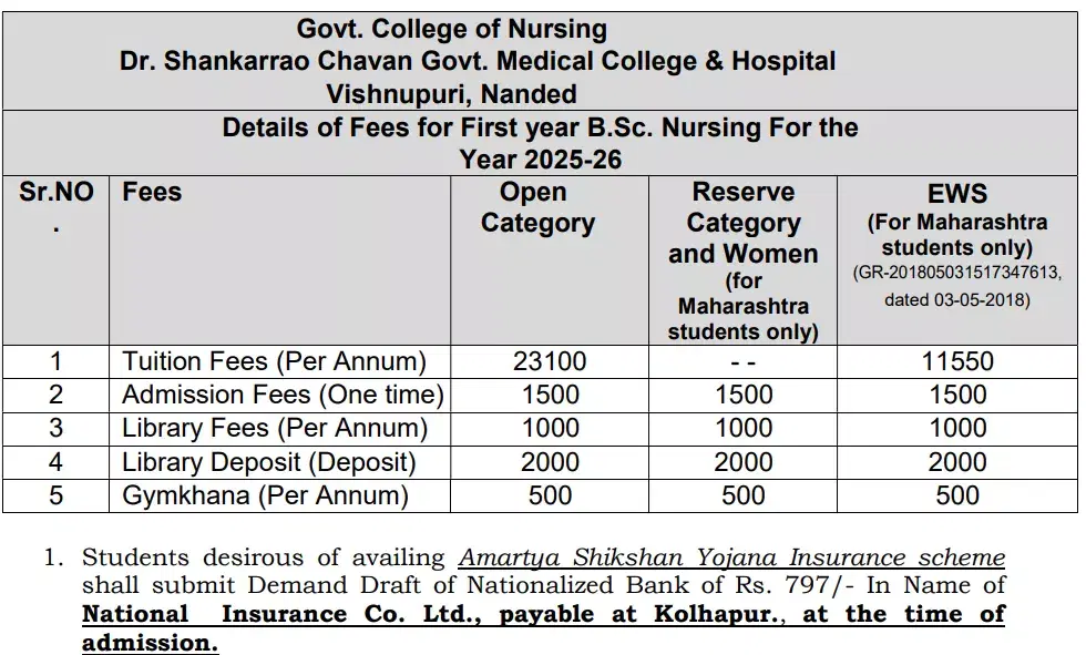 Dr.S.C.Govt Medical College Nanded B.Sc (Nursing) fees 2025 is ₹ 1.02 Lakhs for the entire course duration.