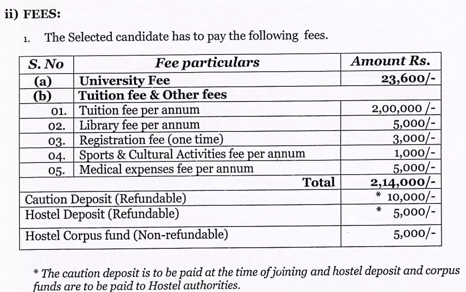 - Candidates need to pay ₹ 2.48 Lakhs in the first year.