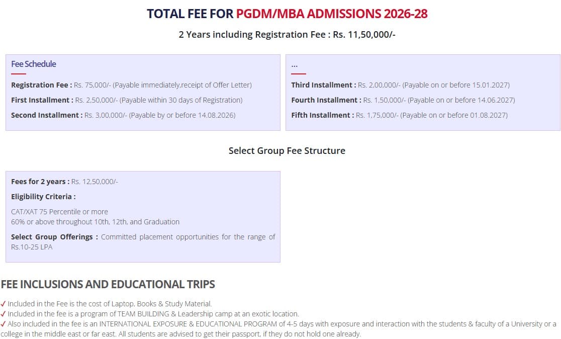 - The total fees for PGDM Marketing is ₹ 11.5 Lakhs.