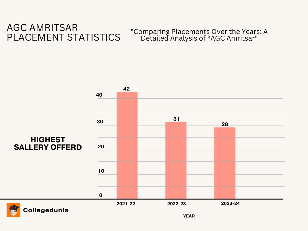 The placement report for AGC Amritsar 2025 has not been released yet. According to the AGC Amritsar Placements 2023 report, the highest package offered was INR 42 LPA, Infosys, Tecwhere more than 500 companies visited the AGC Amritsar campus. Wipro, Jaro Education, Dr. Fixit, WNS, Aloha Technology and TCS are the top recruiters at the AGC Amritsar.