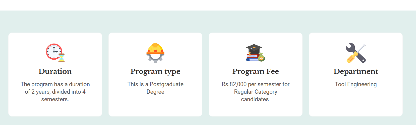 NTTF PG Diploma Tool Engineering is offered as 1 Year Full Time program. The minimum eligibility criteria for PG Diploma is Graduation with 50%+GATE. The total fees for NTTF PG Diploma Tool Engineering in 2024 is ₹ 1.64 Lakhs for the complete course duration, which includes total tuition fees of ₹ 1.64 Lakhs.