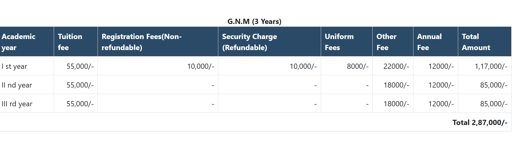 The college offers various scholarships based on performance and financial need, along with support for education loans. The overall course fee is approximately INR 260,000. The institute's fee structure is competitive compared to other medical colleges in Dehradun, and students benefit from job placements with competitive stipends.