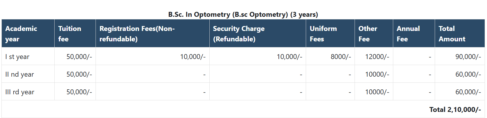 DIMS Dehradun B.Sc Optometry fees in first year is ₹ 90,000. The detailed fees is mentioned below.DIMS Dehradun Hostel Fee is ₹ 1.08 Lakhs to 1.58 Lakhs.