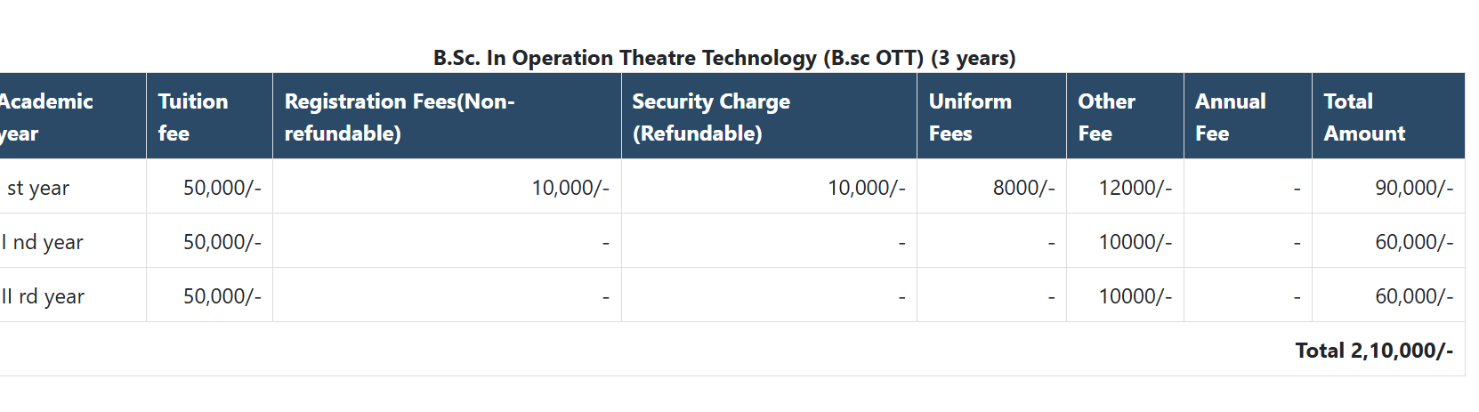 DIMS Dehradun B.Sc Operation Theatre Technology fees in first year is ₹ 90,000. The detailed fees is mentioned below.DIMS Dehradun Hostel Fee is ₹ 1.08 Lakhs to 1.58 Lakhs.