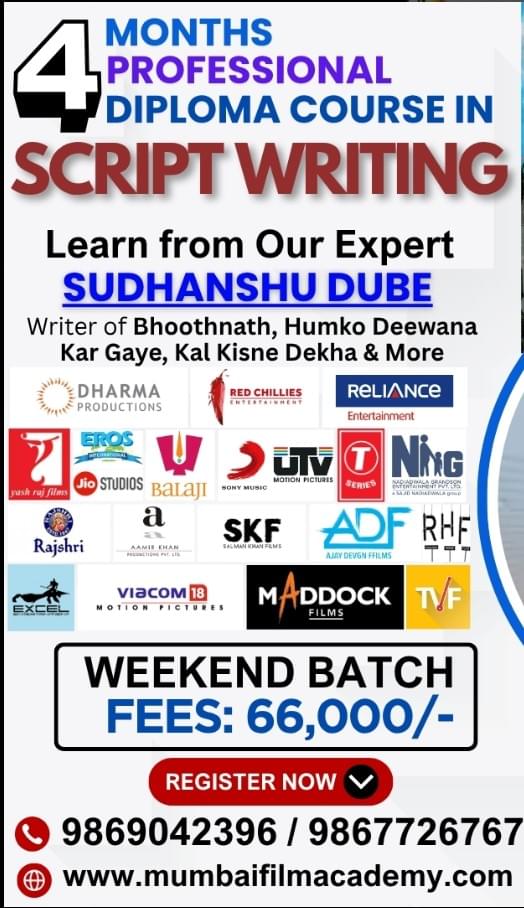 Mumbai Film Academy Diploma Screenplay Writin is offered as 4 Months Full Time program. The total fees for Mumbai Film Academy Diploma Screenplay Writin in 2025 is ₹ 66,000 for the complete course duration.