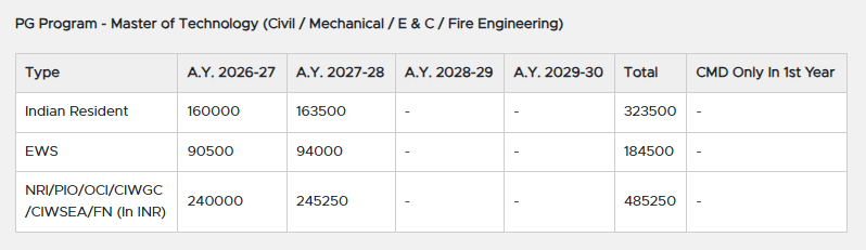 - Candidates need to pay ₹ 2.68 Lakhs in the first year.