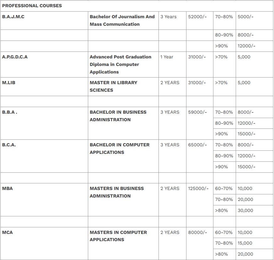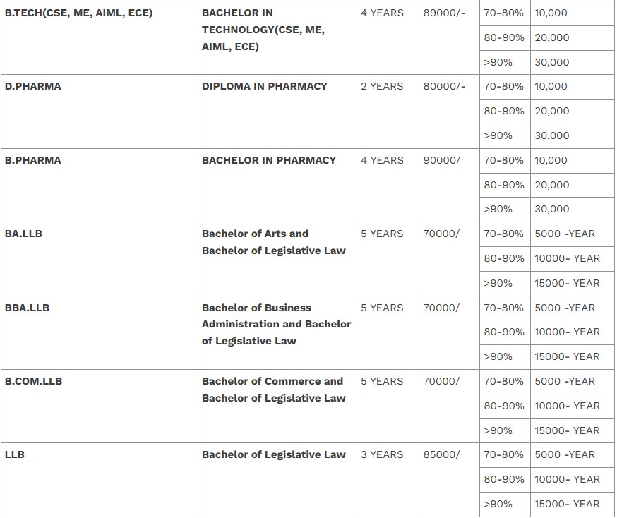While there are fines for low attendance, the college does not provide caste-based fee reductions, although scholarships for high-achievers are given irrespective of caste.