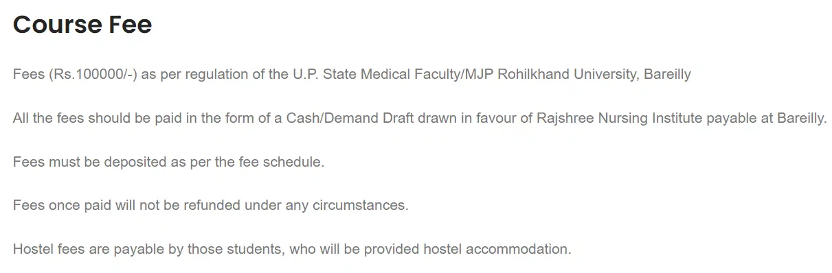 Rajshree Medical Research Institute Bareilly Hostel Fee is ₹ 1.73 Lakhs to 3.47 Lakhs.