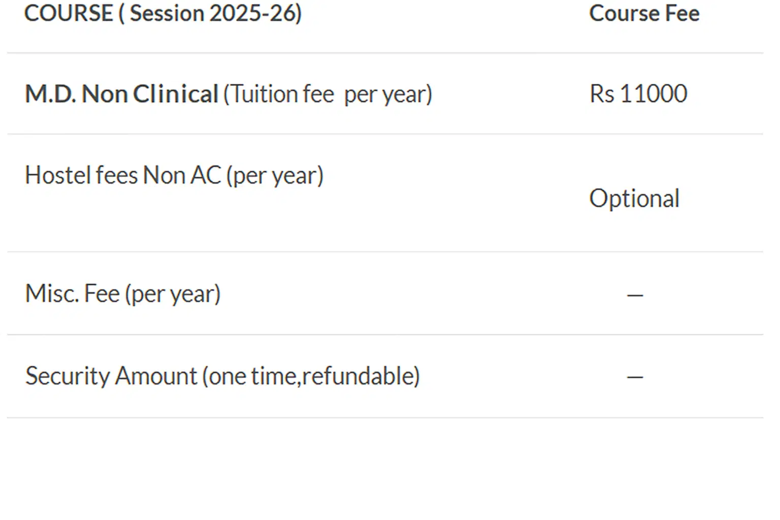 | Fee Type | Total Amount (INR) |
