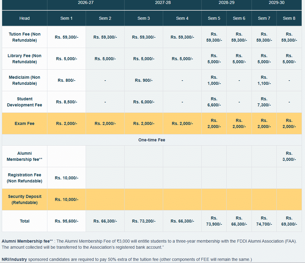 | FDDI Hyderabad | ₹ 7.32 Lakhs |