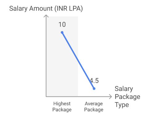 The highest package offered is 10 lacs per annum, with an average package of 4.5 lacs per annum. Annually, 40-50% of students secure placements, while others pursue higher education or government jobs. Internships are facilitated through platforms like NPTEL and Intershala, with specific training in AutoCAD provided in collaboration with IIT Kanpur.