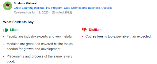 See what Sushma Vishnoi (PG Program, Data Science 2022) has to say about the internship opportunity at Great Learning Institute, Gurgaon: