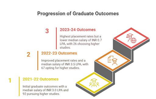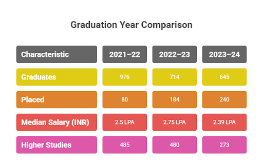 The placement scenario at this college is predominantly favorable for Computer Science (CSE) and Information Technology (IT) students, with approximately 90-100% of these students securing jobs. The average package for CSE/IT ranges from 5 to 8 LPA, with the highest on-campus package being around 11-13 LPA, and notable off-campus packages reaching up to 45 LPA. However, placements for Mechanical and Electronics and Communication Engineering (ECE) students are significantly lower, with placement rates of 60-75%.