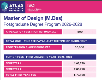 | Date of Application Submission for Admission 2026 [M.Des] | Sep 11, 2025 - Feb 23, 2026 Ongoing |