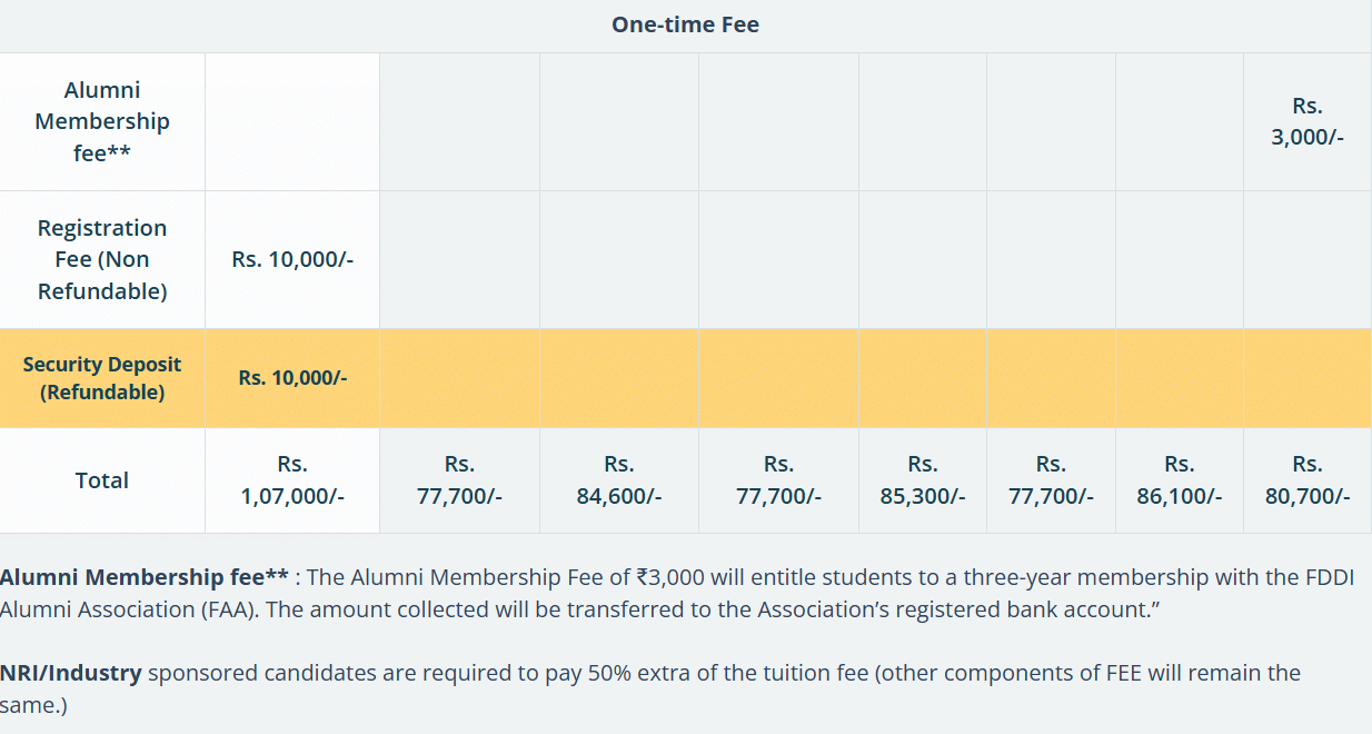 16 Jan, 2026 FDDI Chandigarh B.Des Fashion Design Fee Structure 2026-27 has been released. The total academic fee is ₹ 6.77 Lakhs. Check details.