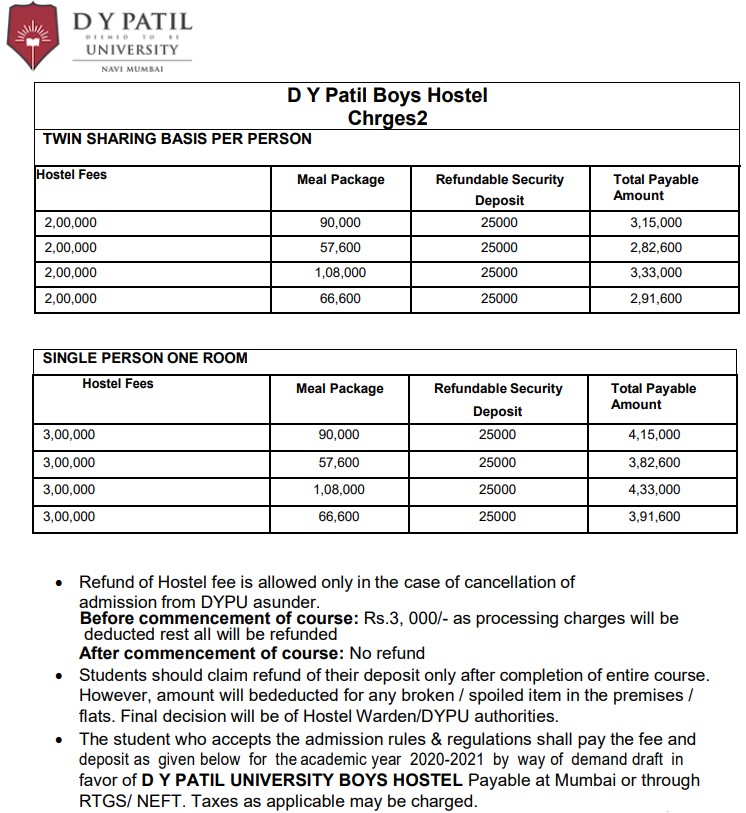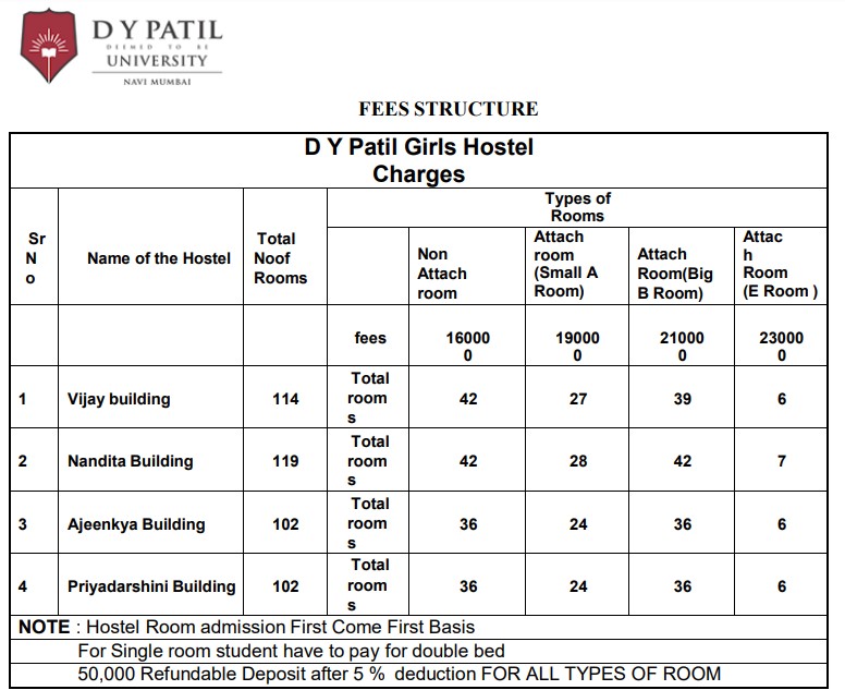 DY Patil School of Physiotherapy Navi Mumbai Hostel Fees 2025, Facilities, Rooms, Food, Photos