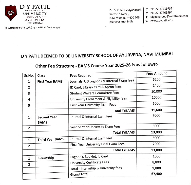 The course spans 5.5 years, including a one-year internship, with evaluations focused on knowledge acquisition. Each department has at least five professors, with standout faculty in anatomy and Sanskrit for their exceptional teaching and support. First-year tuition is 6 lakh INR, increasing by 3% annually, resulting in a total cost exceeding 30 lakh INR.