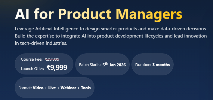 - The total fees for Certification Product Management Fundamentals is ₹ 9,999.