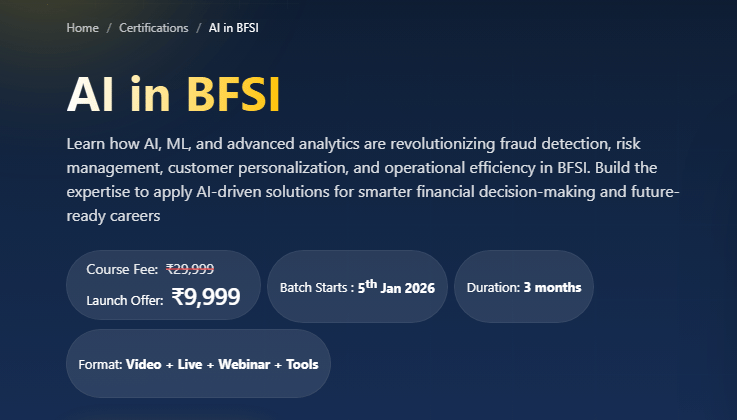 - The total fees for Certification Banking, Finance and Insurance is ₹ 9,999.
