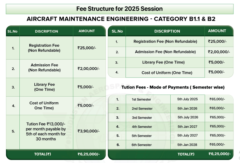 Earlier, AME Mechanical Stream fees at Hindustan Aerospace & Engineering Pune was ₹ 6.25 Lakhs (in 2022) for the entire course duration. This shows that the fee has remained unchanged since 2022.