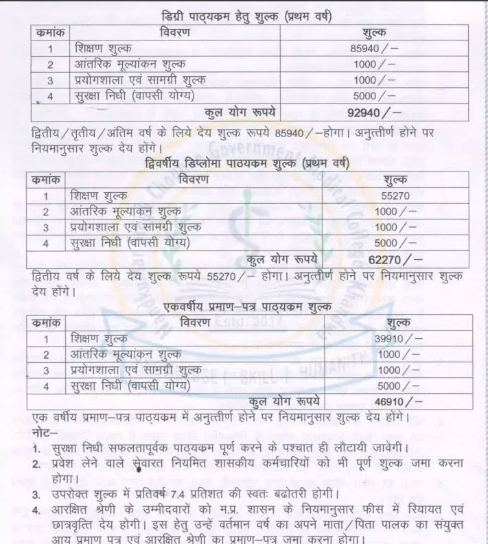 NSC KHANDWA Certification Operation Theatre Technician fees in first year is ₹ 46,910. The detailed fees is mentioned below.NSC KHANDWA Hostel Fee is ₹ 12,000.
