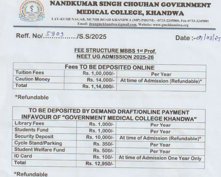 The internship includes extensive duties and hands-on experience. Hostel accommodations are provided for interns. Scholarships are available based on academic performance and economic background, including the Postmatric Scholarship for OBC/ST/SC and the Mukhyamantri Medhavi Chhatra Yojna, covering tuition fees up to 100,000 rupees, but not hostel or miscellaneous fees. The total annual fees amount to 114,850 rupees, including tuition, hostel, library, and miscellaneous charges. A two-year rural service bond may apply for scholarship recipients.