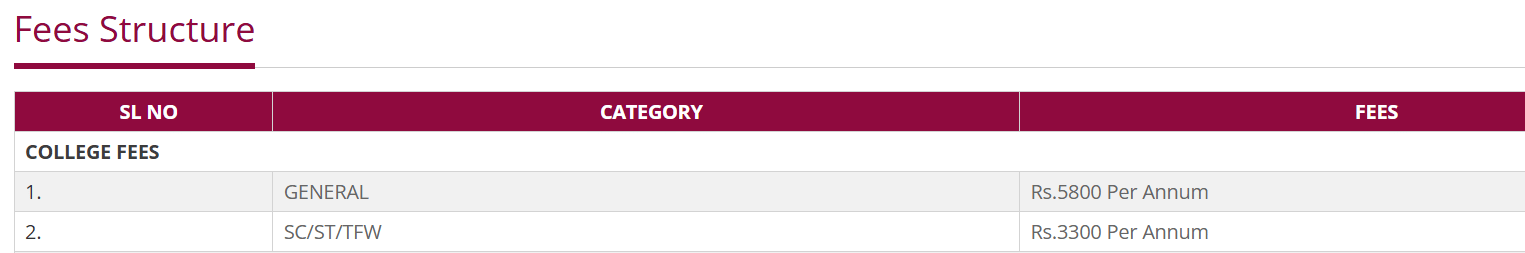 | Fees (2024 - 2025) | Year 1 (in INR) | Year 2 (in INR) | Year 3 (in INR) |