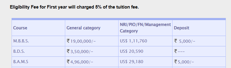 - The total fees for B.A.M.S is ₹ .