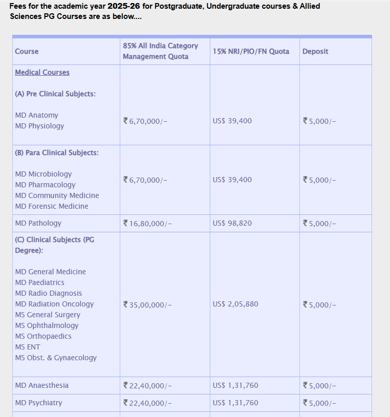 - The total fees for M.D Psychiatry is ₹ 67.25 Lakhs.