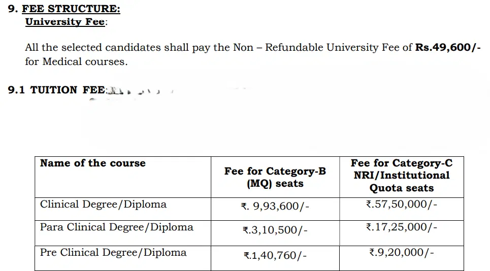 - For Management category students, the total fees is ₹ 30.3 Lakhs.