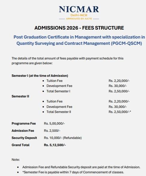 | NICMAR Delhi | ₹ 5.13 Lakhs |