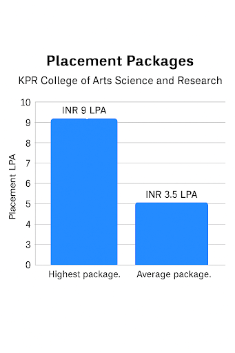 The highest package offered at KPR College of Arts Science and Research Coimbatore is INR 18 Lakhs, while the average package stood at INR 4.2 Lakhs. Various recruiters participated in the recruitment process of KPR College of Arts Science and Research Coimbatore including Infosys, Wipro, Deloitte, TCS, ELGI Equipments Ltd and more.