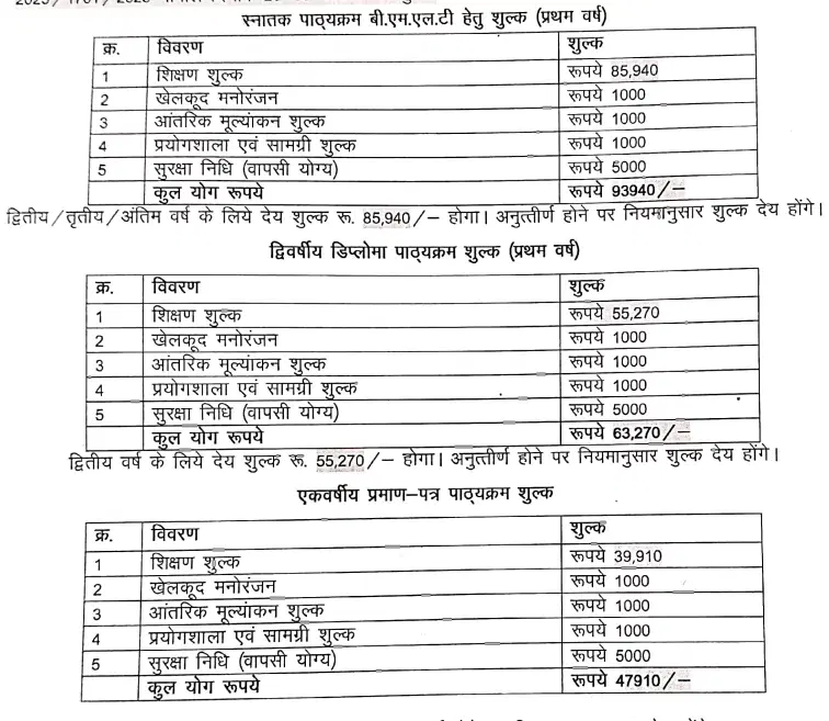 GMC Ratlam Diploma Medical Lab Technology fees in first year is ₹ 63,270. The detailed fees is mentioned below.