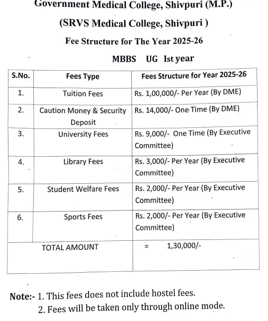 SRVSMCS MBBS fees in first year is ₹ 1.3 Lakhs. The detailed fees is mentioned below.SRVSMCS Hostel Fee is ₹ 24,000.