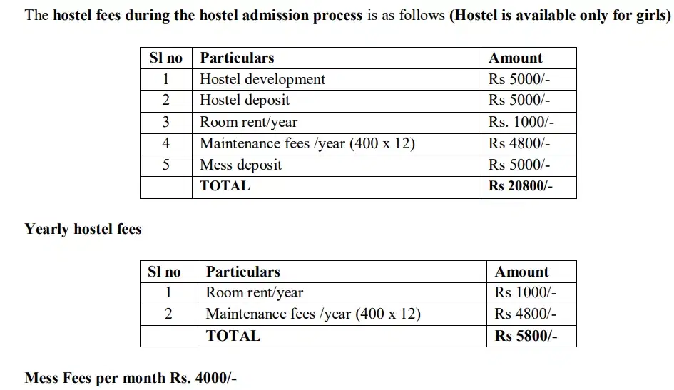 The hostel is in very good condition. Per room can accommodate 3 people and there is an attached bathroom. The hostel food is mediocre and the menu is not so good. The registration for hostel should be done during the process of admission. The hostel fee is 5800/per year.