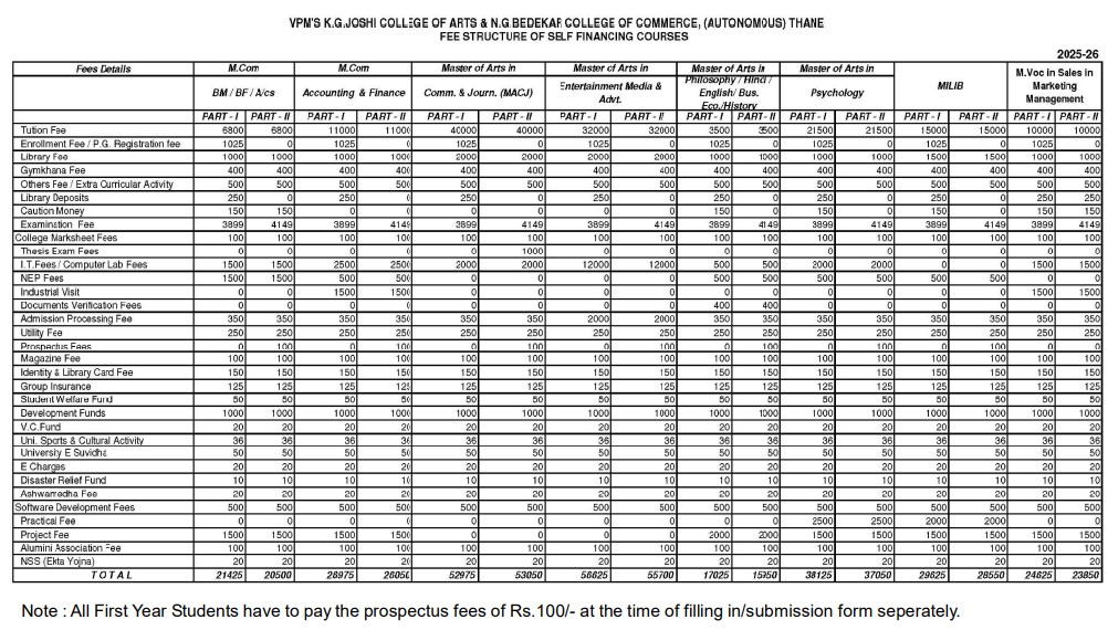 | Fees (2025 - 2026) | Year 1 (in INR) | Year 2 (in INR) |