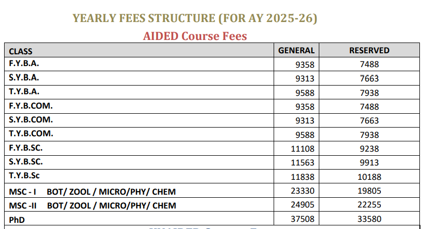 | Fees (2025 - 2026) | Year 1 (in INR) | Year 2 (in INR) | Year 3 (in INR) |
