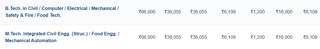 | Fees | Year 1 (in INR) | Year 2 (in INR) | Year 3 (in INR) | Year 4 (in INR) |
