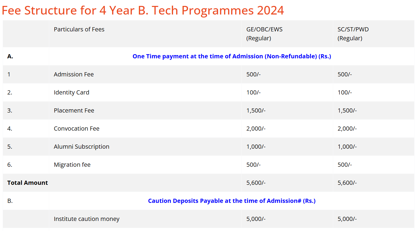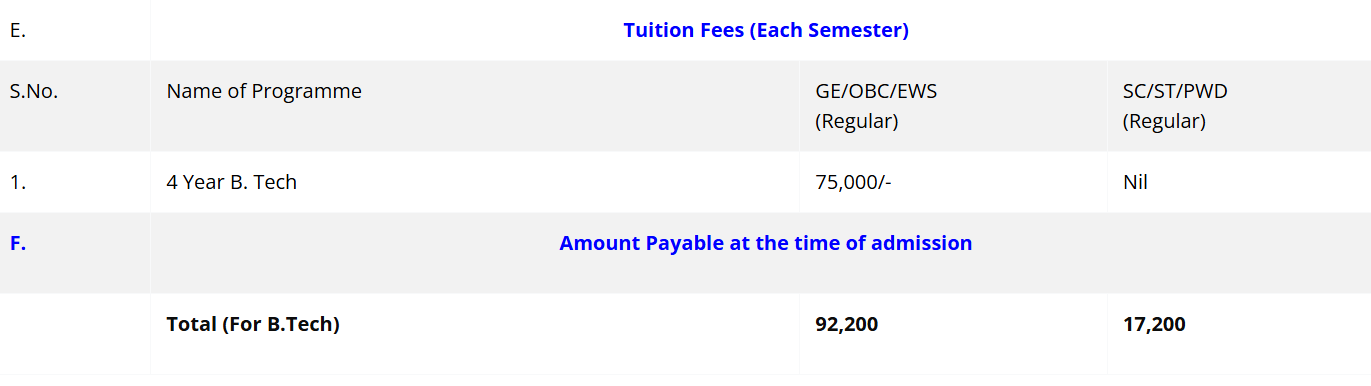 The average placement package is between 8-9 LPA, with a strong placement rate of 85-90%. Students also receive an energy-oriented internship by their 3rd year, with opportunities for additional internships available. The Mechanical branch, introduced in 2023, currently lacks placement data. Tuition fees for General, OBC, and EWS students are set at 75,000 per semester, totaling 150,000 annually, while SC/ST/PH students are exempt from tuition fees. Additional costs include a one-time admission fee of 5,600 (non-refundable), a refundable caution deposit of 5,000, annual fees of 4,200, and semester fees of 2,400.