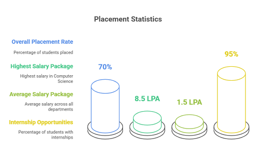 | Placement Rate | Approximately 70% | Varies by department; up to 100% in Mechanical and Electrical Engineering |